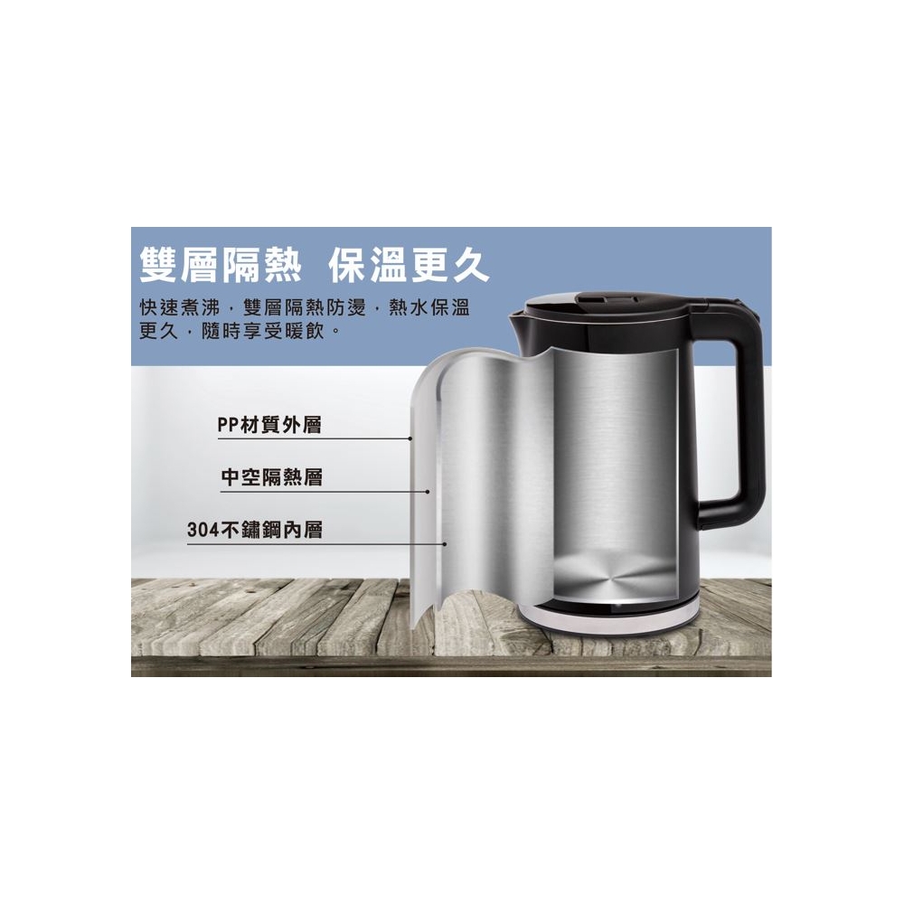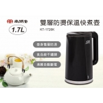 | 品 名 | 1.7L雙層防燙保溫快煮壺 | 型 號 | KT-1726K | 消耗功率 | 1000W |