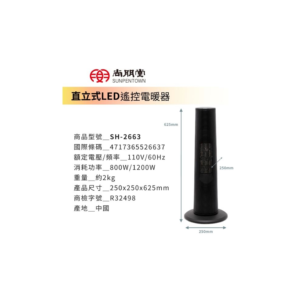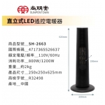 | 品 名 | 直立LED遙控電暖器 | 型 號 | SH-2663 | 消耗功率 | 800/1200W |