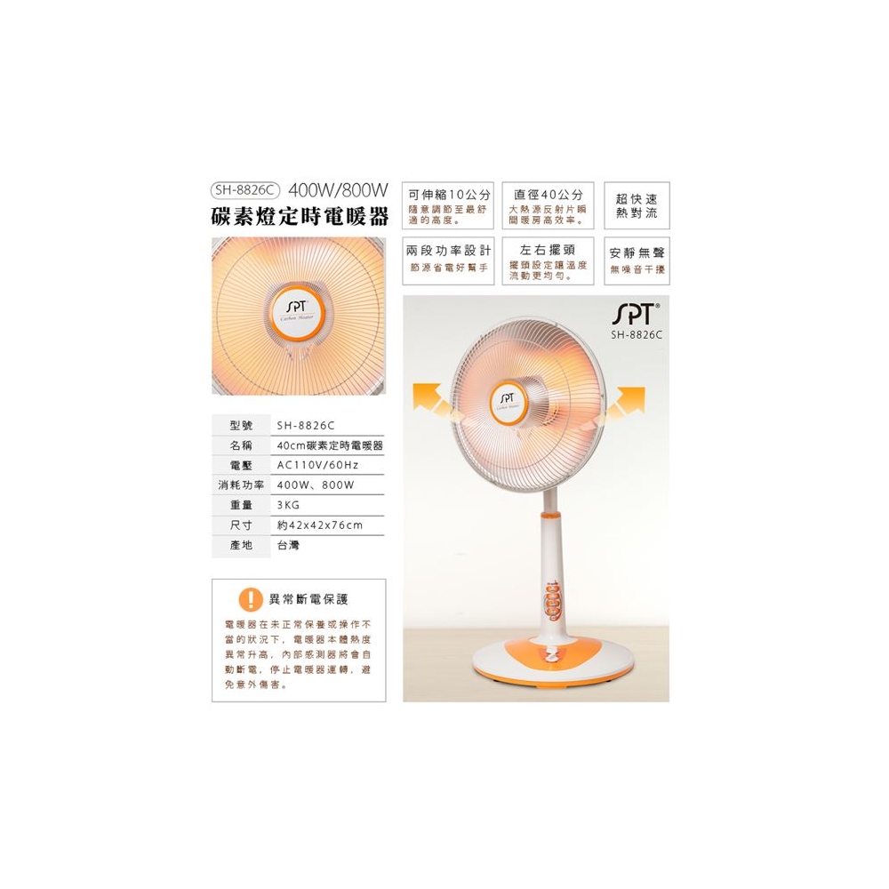 | 品 名 | 40cm碳素燈定時電暖器 | 型 號 | SH-8826C | 消耗功率 | 400/800W |