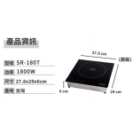 | 品 名 | IH變頻崁入式電磁爐 | 型 號 | SR-180T | 消耗功率 | 1800W |