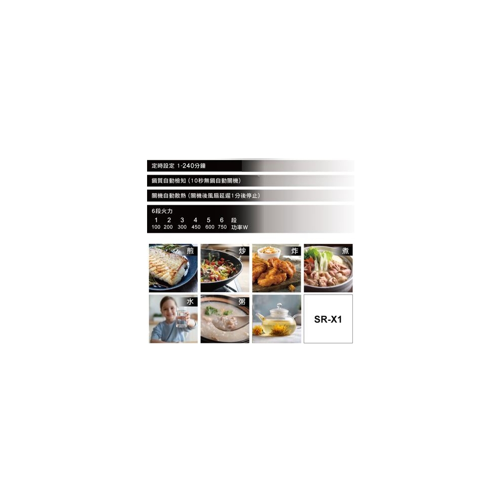 品 名 觸控式電磁爐 型 號 SR-X1 消耗功率 770W