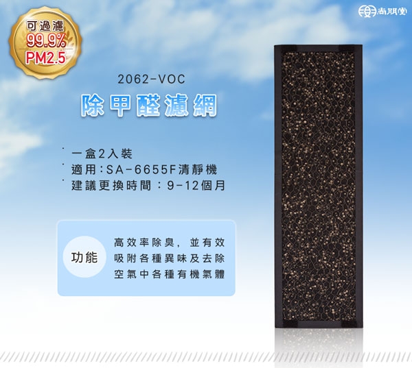 品 名 除甲醛濾網 型 號 2062-VOC 消耗功率