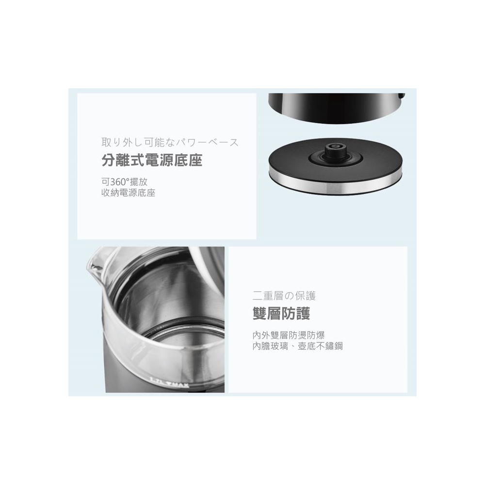品 名 | 1.7L玻璃快煮壺 | 型 號 | KT-1723TB | 消耗功率 | 1000W |