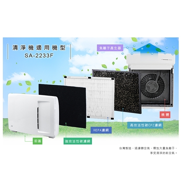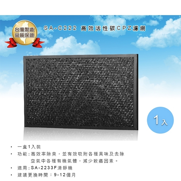 | 品 名 | 蜂巢式活性碳除甲醛濾網(SA-2233F) | 型 號 | SA-C222 | 消耗功率 | |