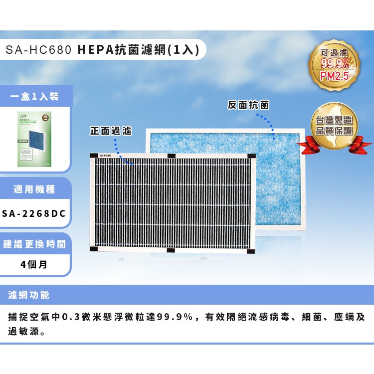 品 名 高效複合式除臭抗菌HEPA濾網 型 號 SA-HC680 消耗功率 --