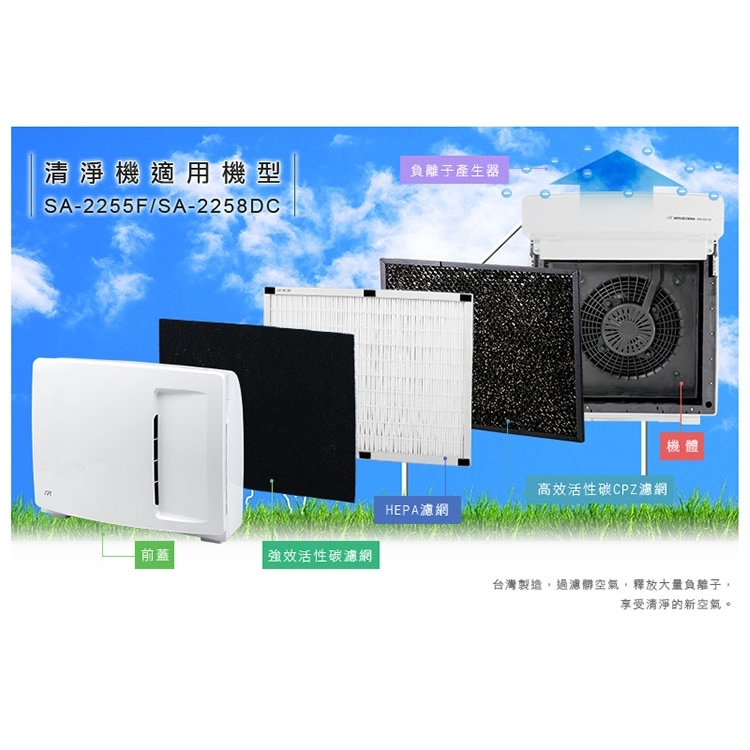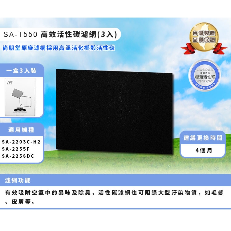 | 品 名 | 高效活性碳濾網3入(SA-2203C/2255F/2258DC) | 型 號 | SA-T550 | 消耗功率 | |