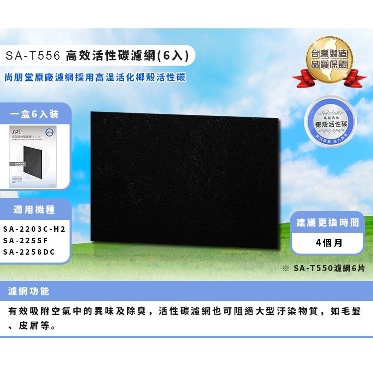 品 名 | 高效活性碳濾網6入(SA-2203C/2255F/2258DC) | 型 號 | SA-T556 | 消耗功率 | |