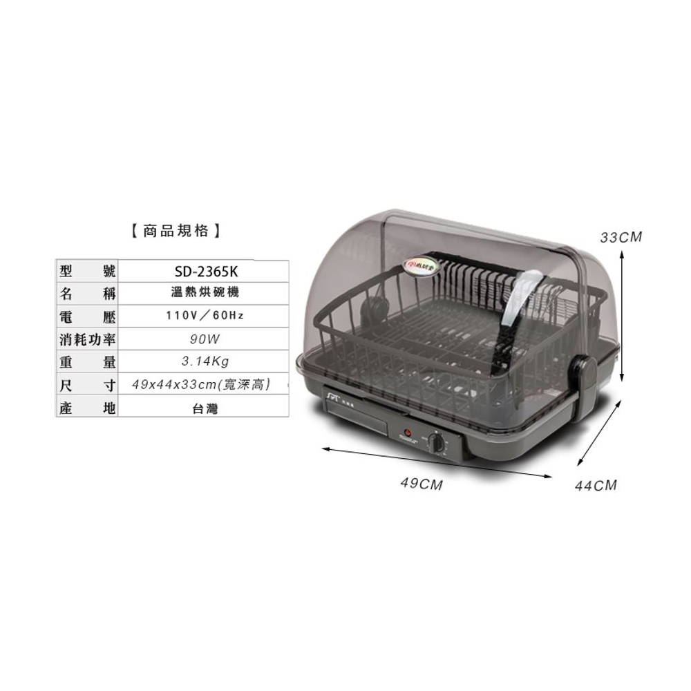 品 名 | 溫熱烘碗機 | 型 號 | SD-2365K | 消耗功率 | 90W |