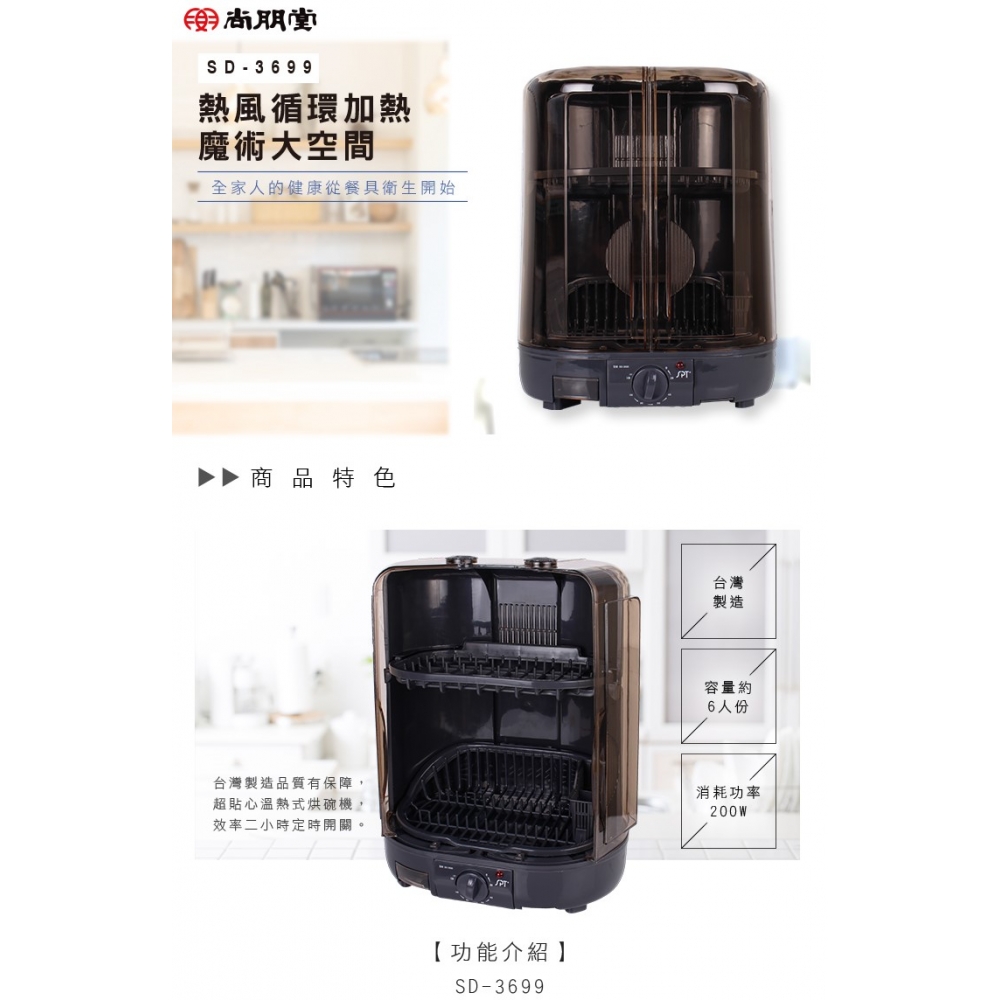品 名 | 溫風烘碗機 | 型 號 | SD-3699 | 消耗功率 | 200W |
