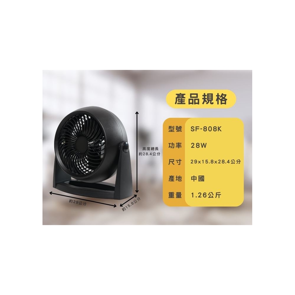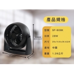 品 名 8吋循環扇 型 號 SF-808K 消耗功率 28W