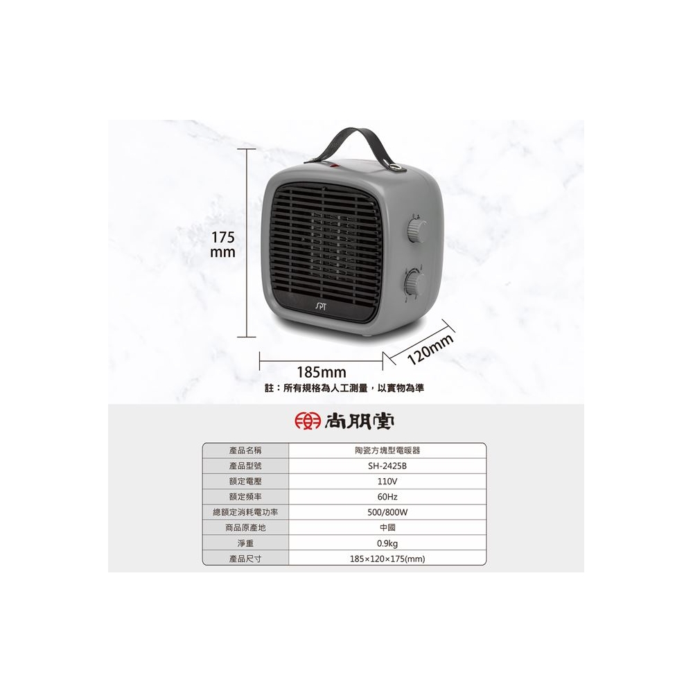 品 名 | PTC陶瓷方塊型電暖器(灰) | 型 號 | SH-2425B | 消耗功率 | 500/800W |