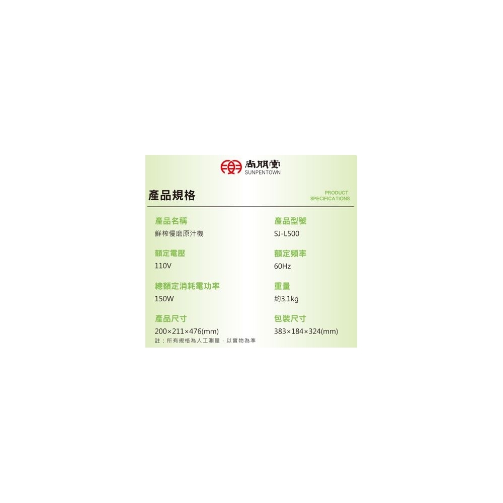 | 品 名 | 鮮榨慢磨原汁機 | 型 號 | SJ-L500 | 消耗功率 | 150W |