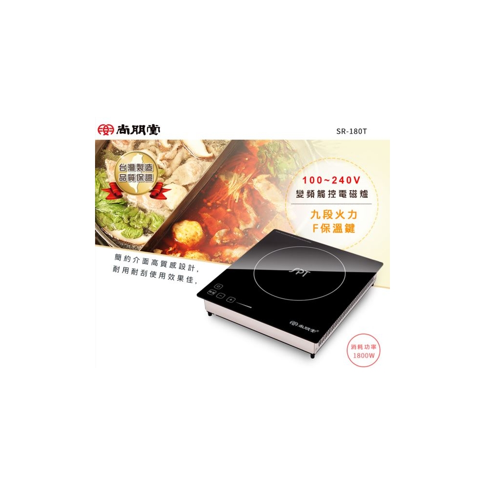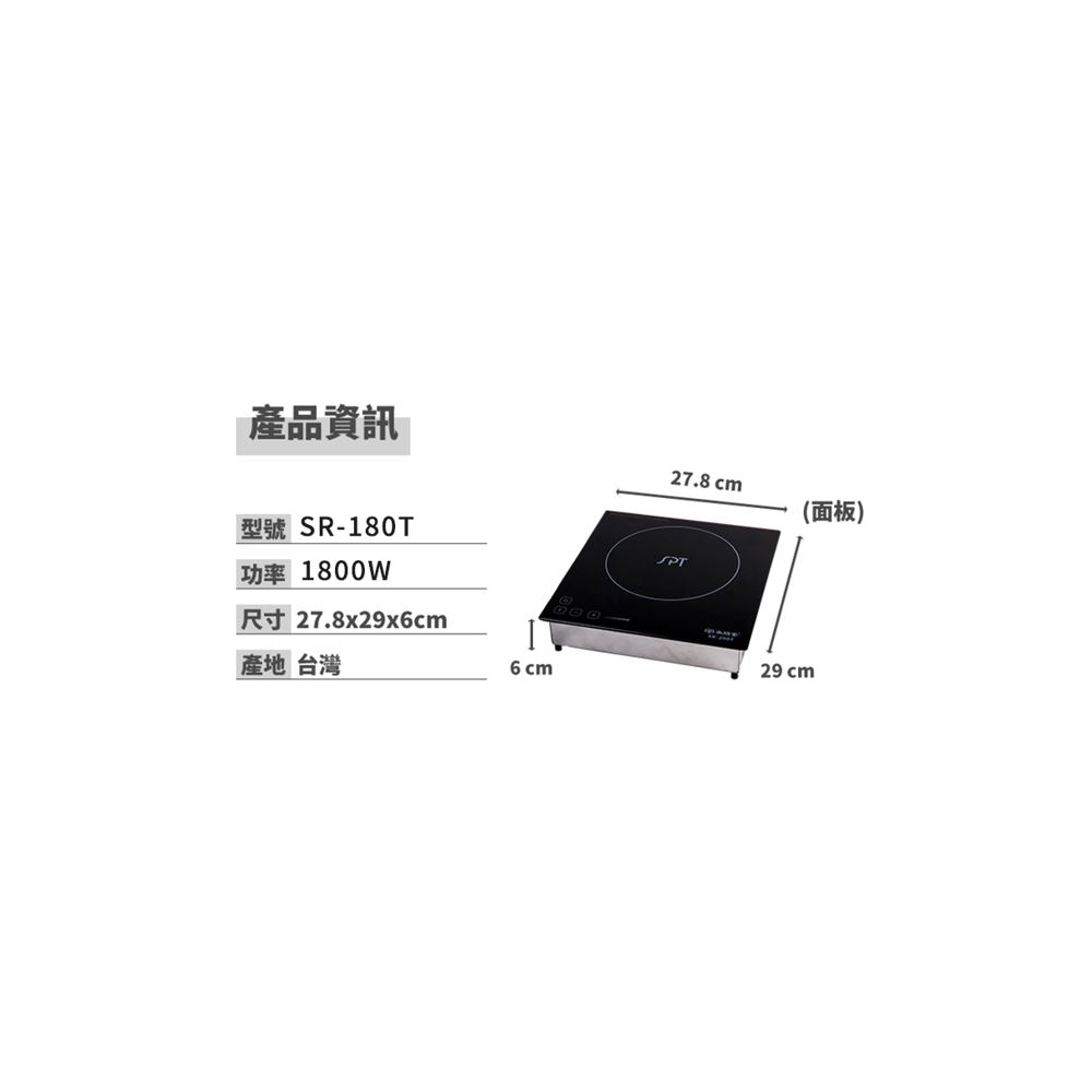 品 名 | IH變頻崁入式電磁爐 | 型 號 | SR-180T | 消耗功率 | 1800W |