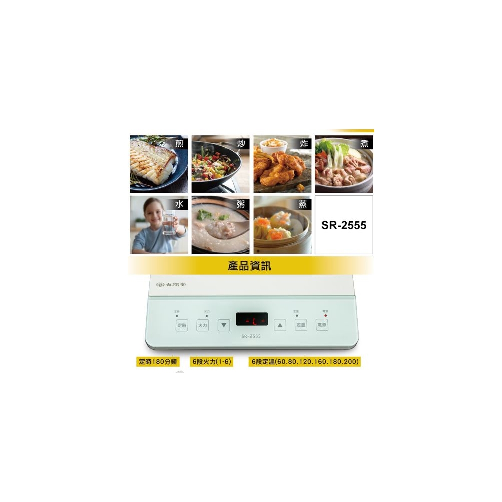 品 名 | 多功能變頻電磁爐 | 型 號 | SR-2555 | 消耗功率 | 1300W |