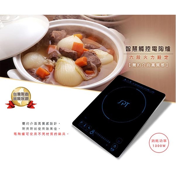 品 名 | 微電腦觸控式電陶爐 | 型 號 | SR-258T | 消耗功率 | 1300W |