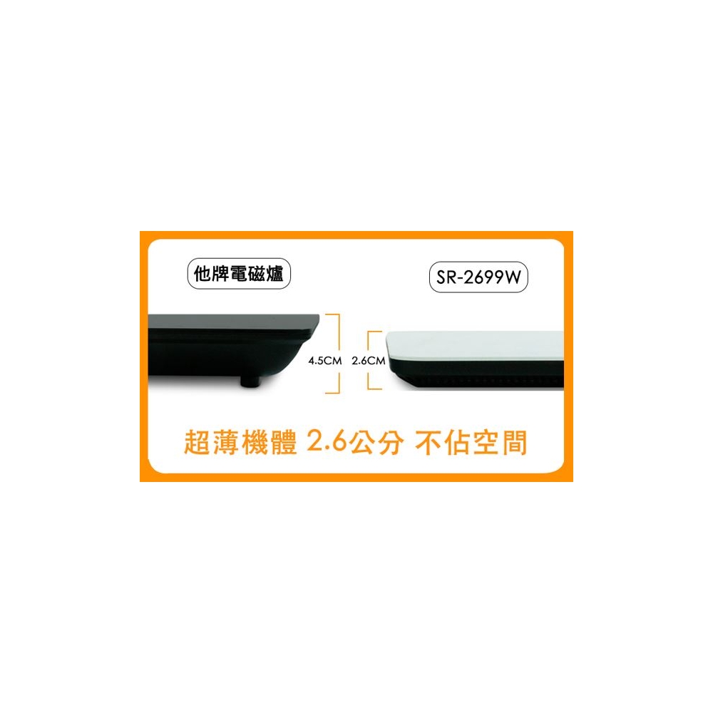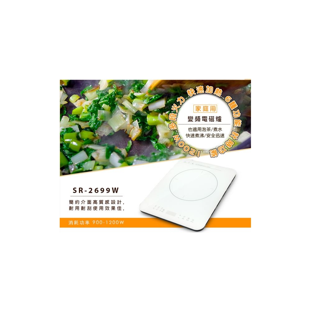 品 名 | IH超薄變頻電磁爐 | 型 號 | SR-2699W | 消耗功率 | 1200W |