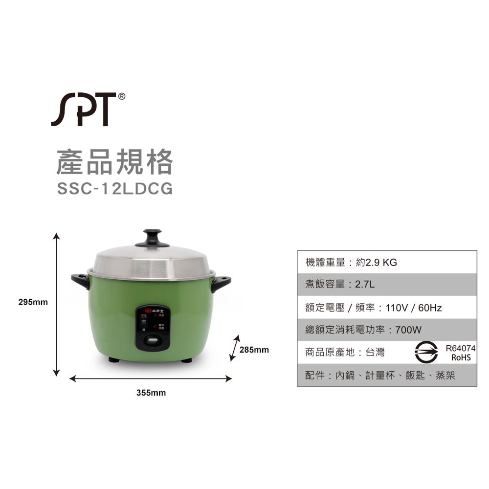 品 名 | 11人份養生不鏽鋼電鍋 | 型 號 | SSC-12LDCG | 消耗功率 | 700W |
